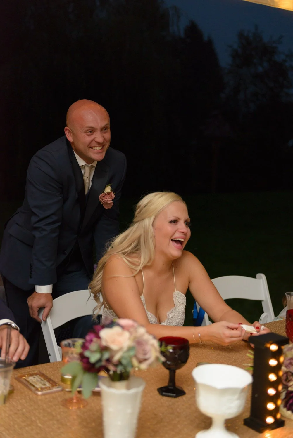 Backyard weddings also allow couples to focus on what matters most. Instead of overloading the day with details, Heather and Jake prioritized comfortable seating, simple table décor, and a dessert bar from Lux Sucre Desserts. This approach keeps planning manageable while still creating a thoughtful guest experience.