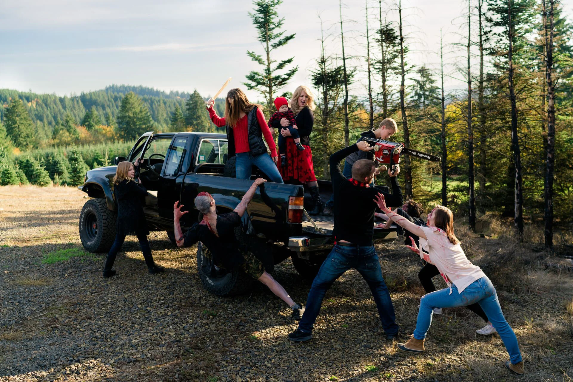 Creative family photo sessions like this are always a treat for us to capture. It was quite an adventure working with zombies, chainsaws, and a toddler—not your typical family shoot, but it made for unforgettable memories! Halloween is one of Amber’s favorite holidays, so this unique session easily ranks as one of her all-time favorites.